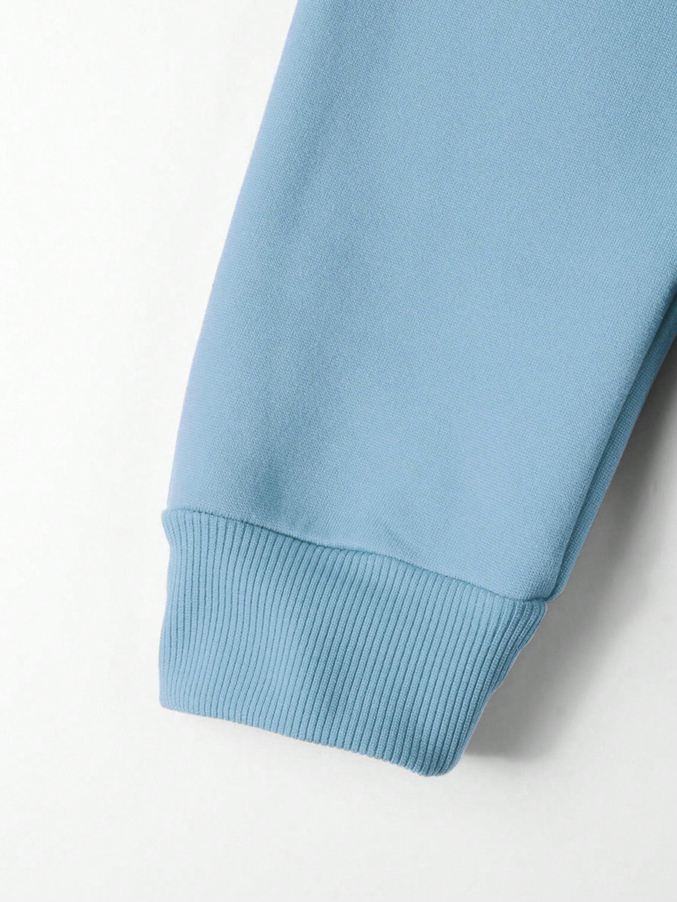 - Stijlkenmerken: Voorzien van een praktische capuchon en een handige zak, met een stijlvolle babyblauwe kleur en opvallende letterprint.